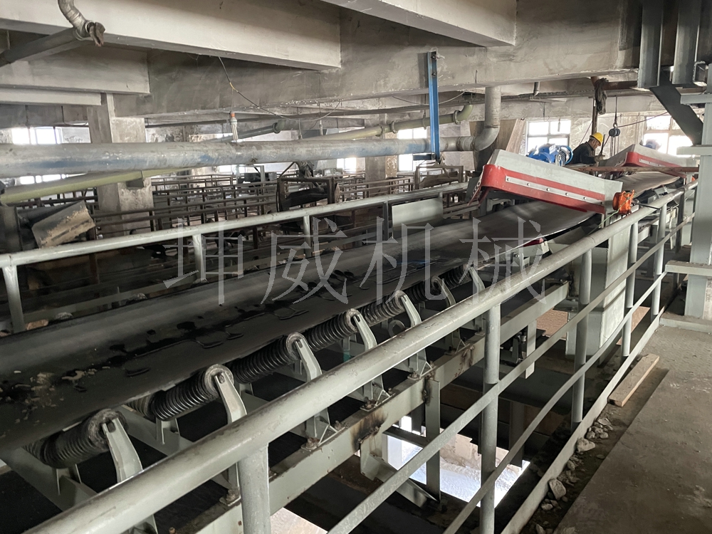 河南坤威機械在湖北黃石的施工現(xiàn)場,該皮帶輸送機為帶犁式卸料器的機型,目前已經(jīng)安裝使用。